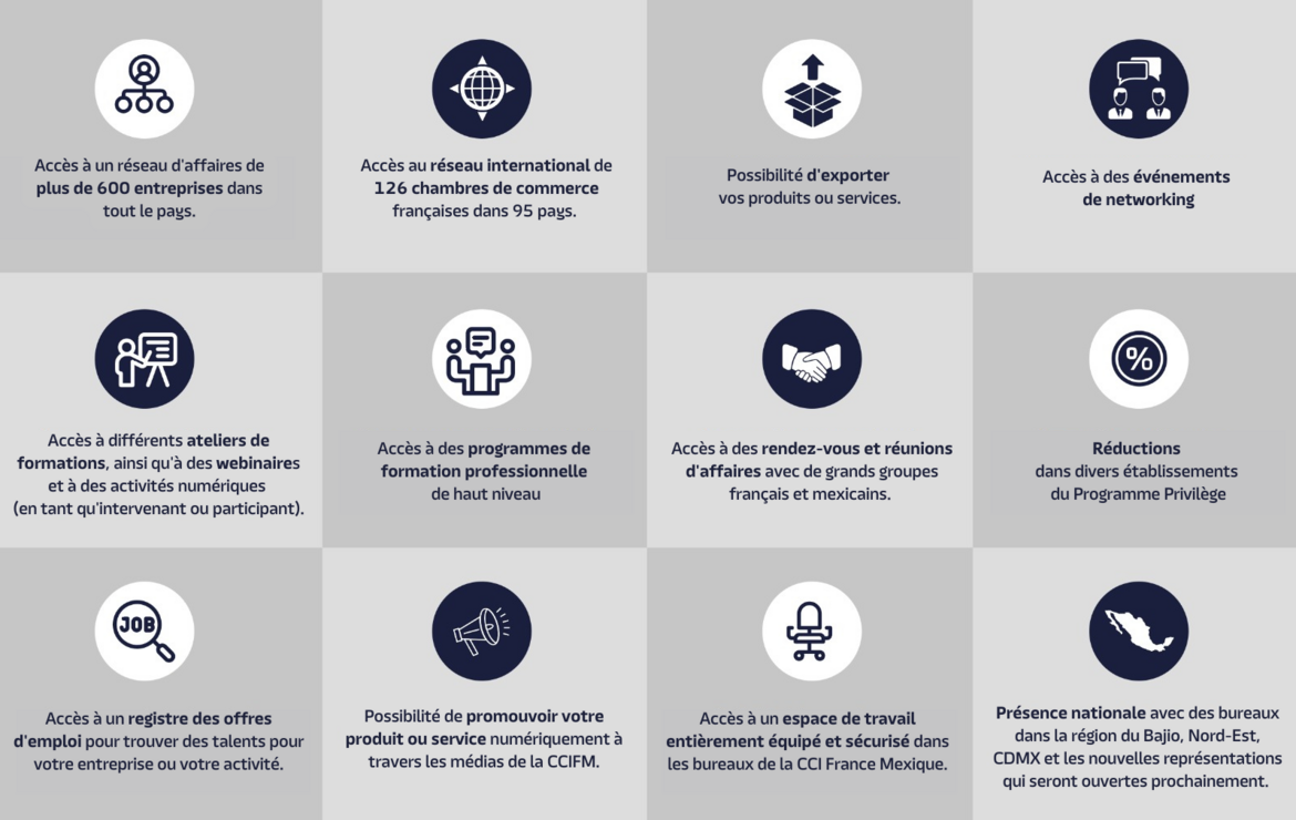 Découvrez les nombreux avantages que l'adhésion à la CCI France México offre à votre entreprise.