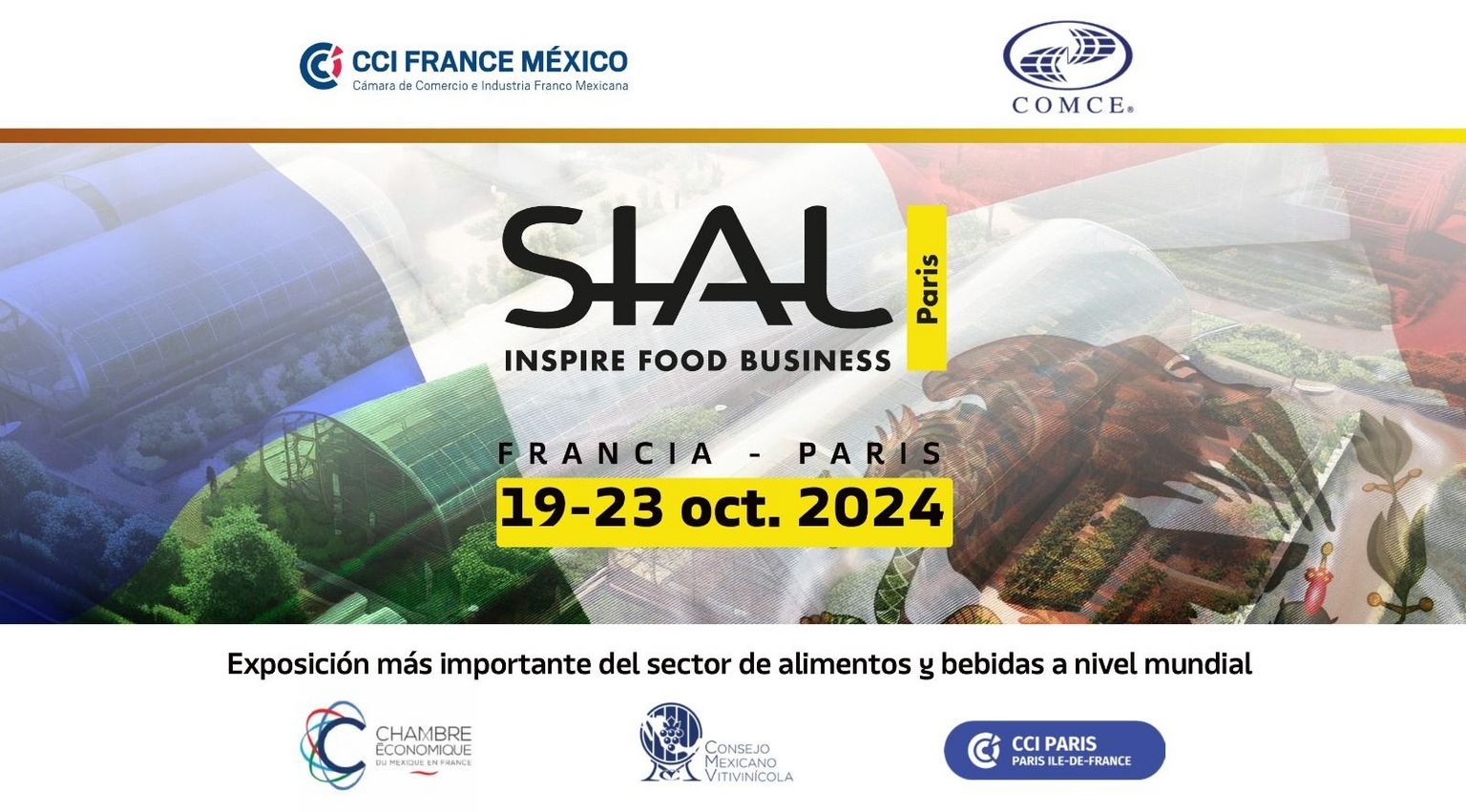 En colaboración con Dirección Europa - COMCE, la Cámara de Comercio e Industria Francia-México, el SIAL París y la Embajada de México en Francia, te presentamos emocionados "México en el SIAL París 2024". ?