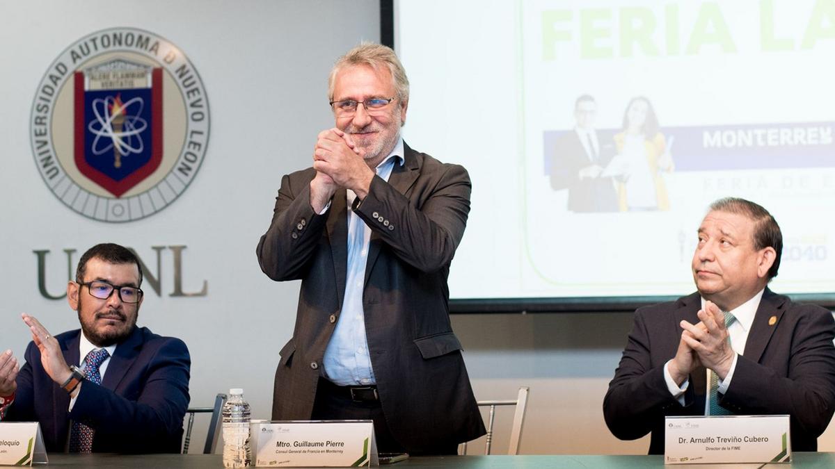 La inauguración contó con la presencia de destacadas autoridades del Estado de Nuevo León: el Secretario del Trabajo, Maestro Federico Rojas; la Secretaria de Educación, Dra. Sofialeticia Morales Garza, y el Subsecretario de Fomento e Innovación Económica, Licenciado Carlos Serna. Nos honraron también con su presencia el Cónsul de Francia en Monterrey, Guillaume Pierre, el Vicepresidente del Consejo Directivo de la CCI France México, Capítulo Noreste, Paul Maya, y el Director de la Facultad de Ingeniería Mecánica y Eléctrica (FIME), Dr. Arnulfo Treviño Cubero, quien fungió como anfitrión del evento.